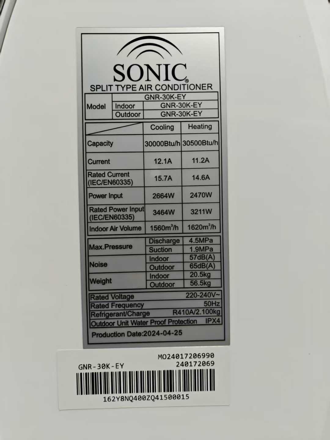 30000Btu Air Conditioning Class A Split A/C ON OFF Type Air Conditioners 220V 50Hz Fast Cooling and Heating Aircons